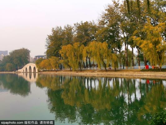 2023年11月21日,初冬时节,北京,玉渊潭公园银杏金黄,秋色绚烂,美景迷人。