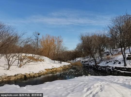 2023年12月25日,北京冬日持续晴好天气, 圆明园蓝天白云,美不胜收。