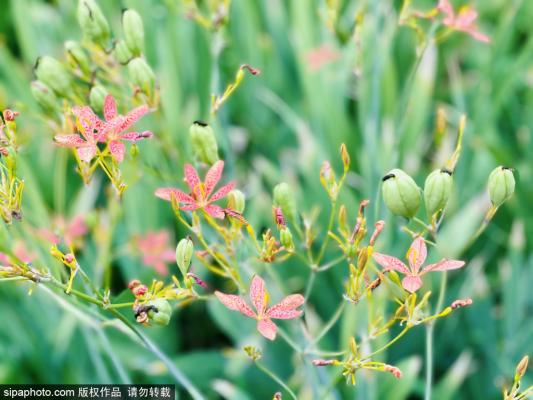 2023年7月25日,夏季北京滨水文化公园内的绝美植物射干花开。