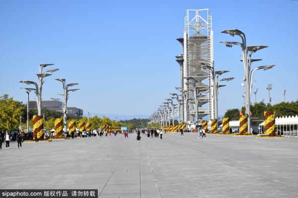 2023年10月14日,北京,奥体中心花团锦簇装扮一新喜迎第三届“一带一路”国际合作高峰论坛。据悉,第三届“一...