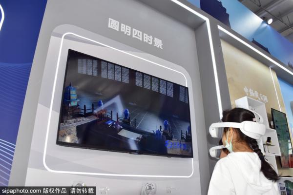 2023年9月2日,北京,在服贸会首钢园展区,《圆明四时景》首次全景展示数字三维复原后的通州古城。