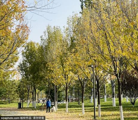 2023年11月22日,北京,小雪节气丽泽城市运动休闲公园风起黄叶落。