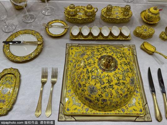 2023年9月2日,北京,在服贸会首钢园文旅展区,高档宴会餐具亮相亮相。