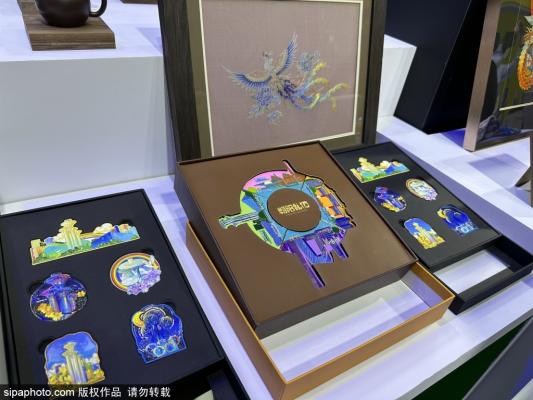 2023年9月2日,北京,在服贸会首钢园文旅展区,北京中轴线系列特色文创礼品成2023服贸会文旅专区热门打卡地...