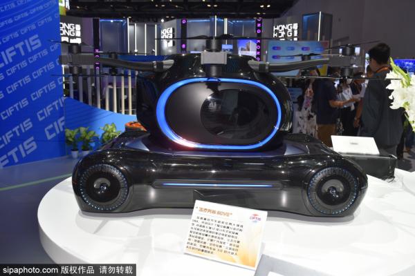 2023年9月3日,北京,在国家会议中心展区,智能电动飞行汽车亮相2023年服贸会。在服贸会综合展的展示厅入口...