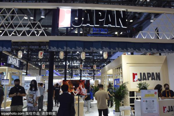 2023年9月3日,北京,2023年服贸会国际展区,日本展区成2023年服贸会的热门展台。在琳琅满目的日本酒和化妆...