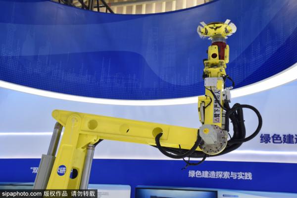 2023年9月2日,北京,在服贸会首钢园区,智能打磨钻孔建筑机器人亮相。