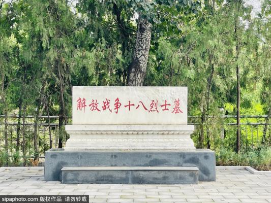 2023年9月4日,北京,瞻仰坐落在北京丰台区丽泽城市运动休闲公园(二期)的解放战争十八烈士墓。