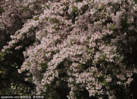 2023年5月17日报道,北京,近日,国家植物园猬实花盛开,宛若“瀑布”一般,美不胜收。