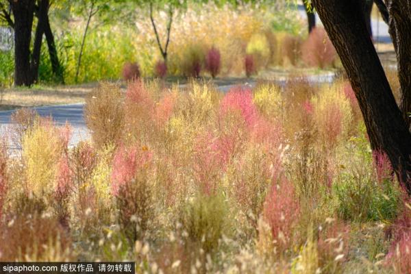 2023年10月16日,北京延庆,野鸭湖国家湿地公园秋意渐浓,地肤草已变红。