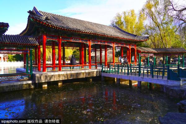 2023年11月28日,北京,随着气温降低,北京各个水面陆续结冰。在大观园湖面出现部分结冰部分水面的景观,随...