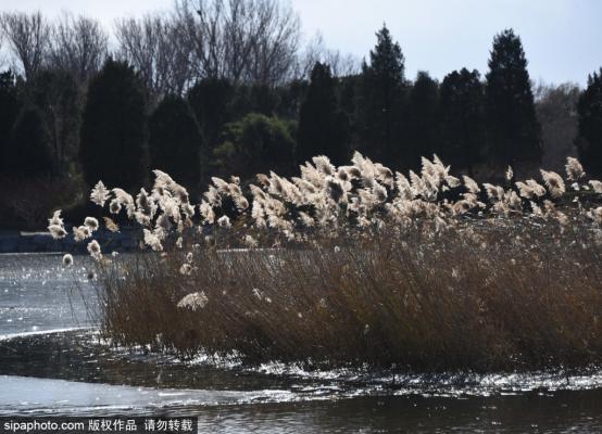 2023年11月27日,北京,圆明园湖面上结了冰,与姿态各异的残荷、芦苇相辉映,呈现初冬别样美韵。