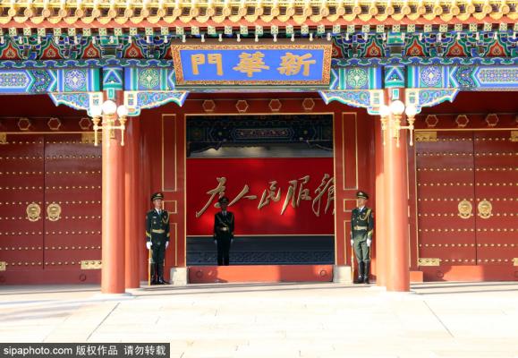 2023年10月17日,北京新华门、中南海红墙、红灯。