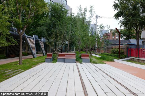 2023年5月24日,北京,大望路SKP商场东侧的华贸中心北广场步行街,高大茂盛的白杨林洒下浓浓的树荫,初夏的...