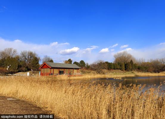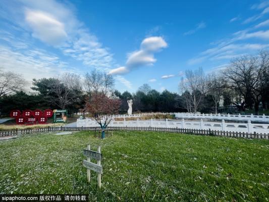 2023年11月29日,北京,近日持续晴冷高颜值天气,圆明园和京城街头蓝天白云,景致美丽。