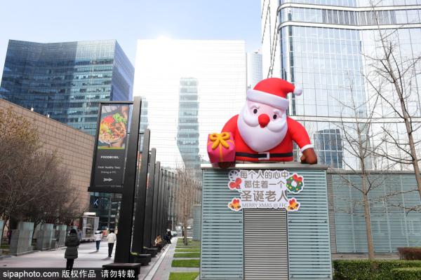 2023年12月6日,北京国贸FDFC大厦门前广场上、写字楼门口、大厅布置了圣诞元素。FFC大厦圣诞节氛围浓厚。