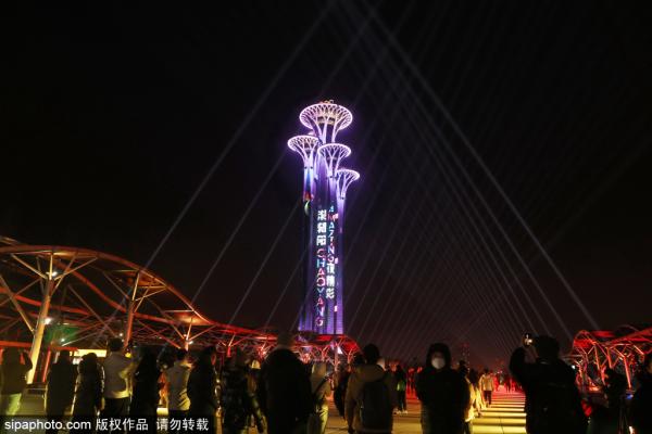 2023年12月3日晚,市民在北京奥林匹克森林公园观赏灯光秀。