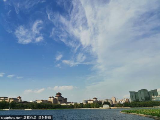 2023年6月28日,一场雷雨后,北京迎高颜值天气,莲花池公园蓝天白云,美不胜收。