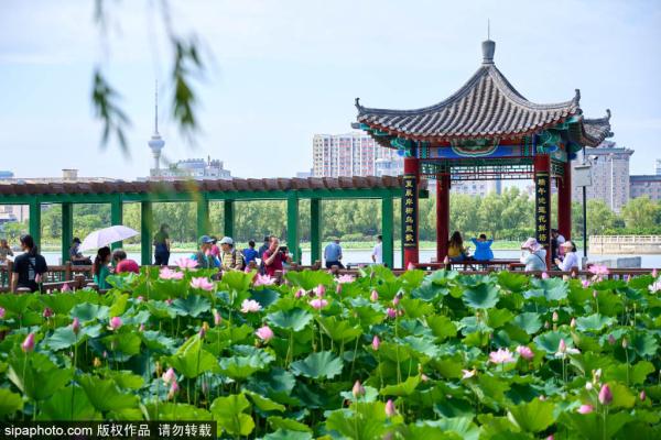 2023年6月28日,雨后荷花分外姣美,北京西站旁莲花池公园内无数荷花相继盛开,吸引不少游客前来观赏。