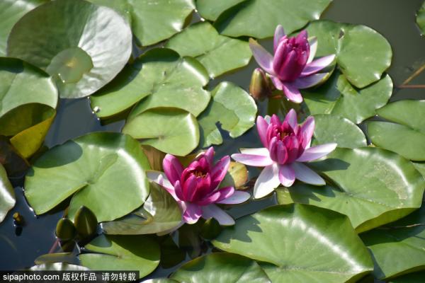 2023年7月2日,北京,北海公园各色睡莲韵味美,娇艳夺目迷人眼。