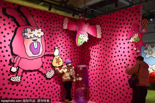 2023年1月8日,北京,首钢园内一处购物中心举办的“糖果花兔的幸运车间”艺术展览吸引市民参观。该展览以兔子...