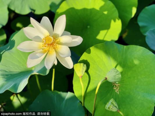 2023年7月4日,北京,莲花池公园的荷花在夏日微风中出淤泥而不染意境美