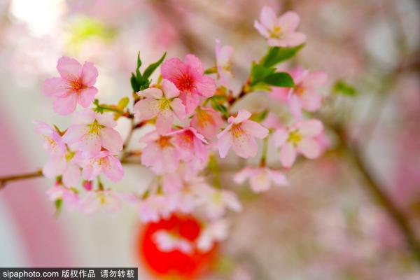 2023年1月23日,北京,玉渊潭公园西门小樱商店里两株早樱迎春绽放,置身其间能感受到浓浓的春意,一朵朵淡...