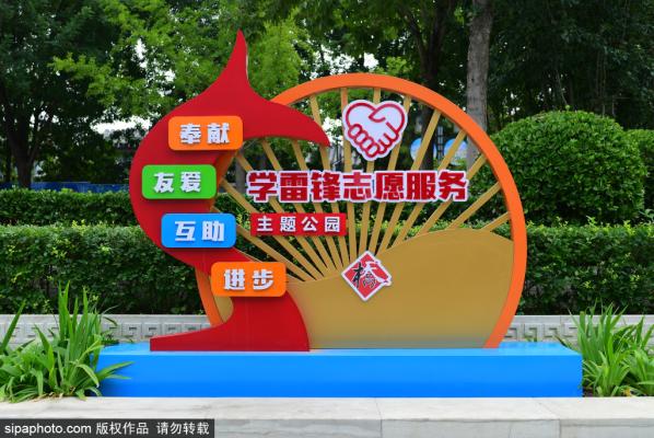 2023年9月18日,北京,学雷锋志愿服务主题公园被花草树木装扮一新,以新面貌迎接中秋和国庆节到来。市民在...