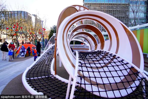 2024年1月15日,北京,西城区灵境胡同地铁站D口附近,崭新的街边公园灵境翠园内热闹非凡,小朋友正在投篮、...